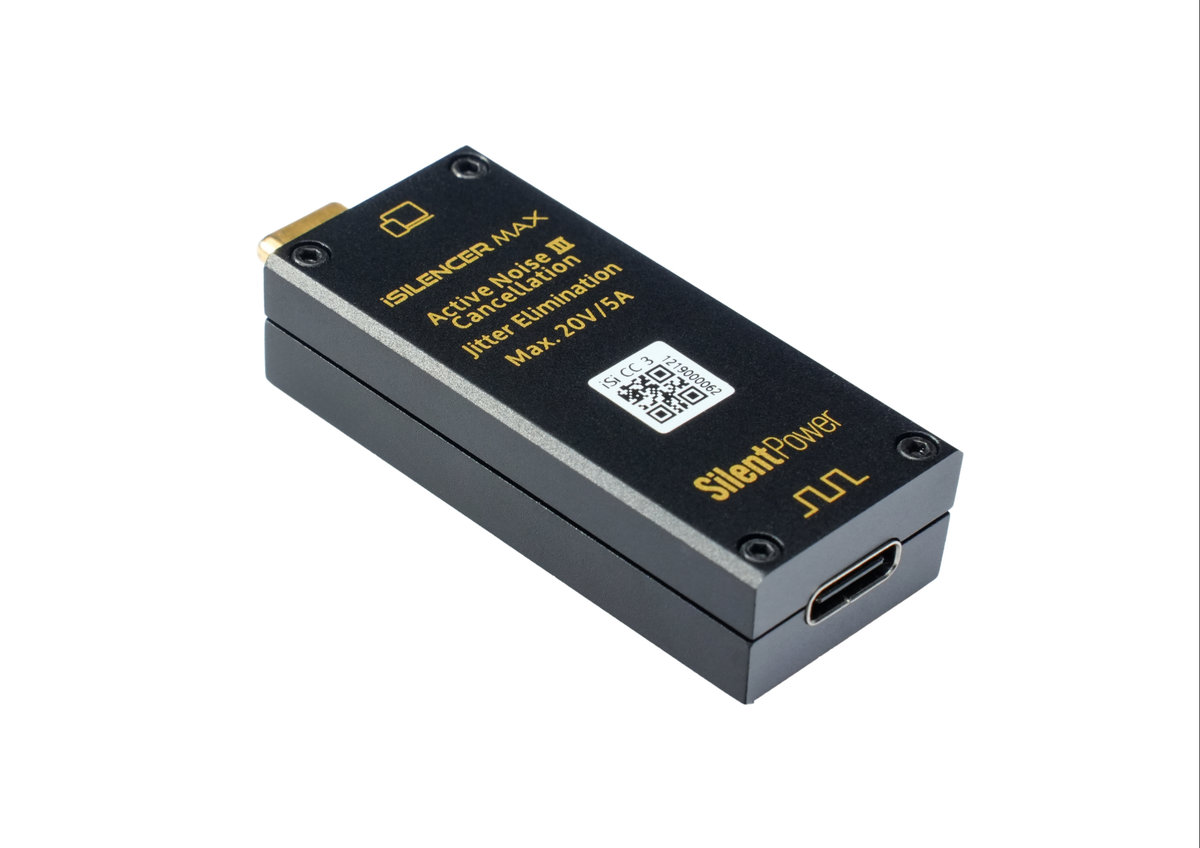 L’iSilencer MAX est un filtre USB-C actif qui nettoie en profondeur le signal numérique et l’alimentation USB grâce à la technologie ANC3 (Active Noise Cancellation).